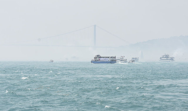Siyah-beyazlı takıma yüzlerce tekne eşlik ederek, boğazı adeta siyah-beyaz renklere bürüdüler.