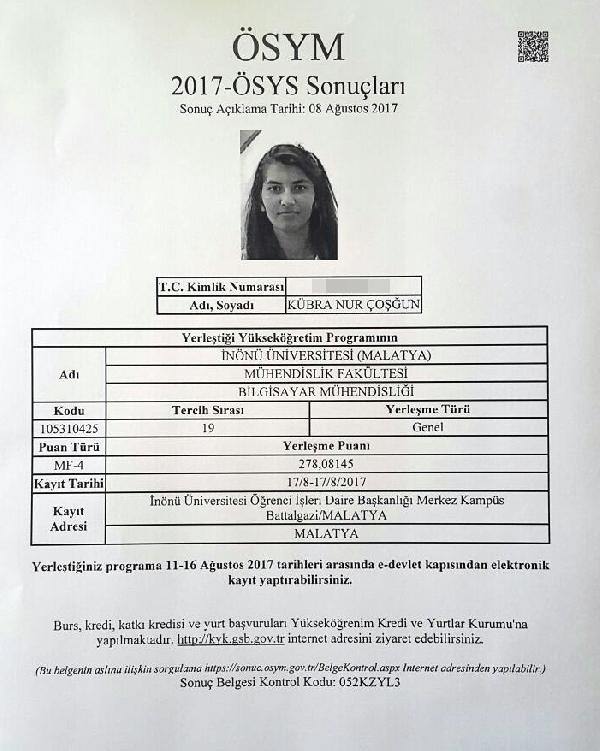 Kübra Nur’un amcasının oğlu Adem Coşkun, kuzeninin LYS sonuçlarına göre Malatya İnönü Üniversitesi Bilgisayar Mühendisliği Bölümünü kazandığını söyledi. Coşkun, Malatya’nın Kübra’nın 19’uncu tercihi olduğunu da kaydetti.