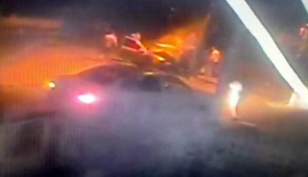 Diğer yandan kaza anı bir işyerinin güvenlik kamarasına yansıdı. Görüntülerde, aracın direğe çarptığı ve alev aldığı, çevredekilerin gelerek yaralıları araçtan çıkardığı görülüyor.