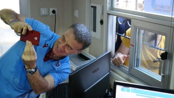 Bugün öğleden sonra TS Club mağazasında kasaya geçerek forma satışı yapan Trabzonspor Başkanı Ahmet Ağaoğlu, saat 18.00’de ise Ortahisar İlçesi Atatürk Alanı’nın üst tarafında yer alan ‘Passolig’ gişelerinde kombine satışı gerçekleştirdi. Kombine satışı yaptığı sırada bir taraftarın kağıda İtalyan bir futbolcunun adını yazarak, ‘Bedelsiz, transfer edelim başkanım’ demesi üzerine, Ağaoğlu, “İsmini söyleme, 100 bin Euro’luk adam olacak şimdi 500 bin Euro. Kendi para istemiyor mu? Karın tokluğuna mı? Severim böyle futbolcuları’ ifadelerini kullandı. Ağaoğlu, para üzerini almayan taraftarları ise tebrik ederek, “Allah razı olsun. Üstü kalsınlardan gidiyoruz. Hasılat sağlam. Transfer için paraları topluyoruz” şeklinde espri yaptı.