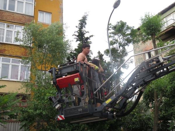 5 katlı bir binanın en üst katından yükselene alevleri gören çevredeki vatandaşlar durumu itfaiye ve sağlık ekiplerine haber verdi. Binada yaşayanlar kendilerini dışarı atarken, üst kattaki dairede yaşayanlar mahsur kaldı.
