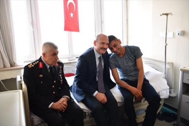 İçişleri Bakanı Süleyman Soylu, Gülhane Eğitim ve Araştırma Hastanesinde tedavi gören askerleri ziyaret etti.