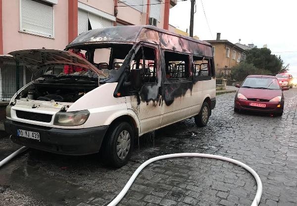Ayvalık ilçesi 50 Evler Mahallesi Şehitler Cami Caddesi’nde bugün sabah saatlerinde seyir halindeki Uğur Güven yönetimindeki 10 YJ 439 plakalı minibüs, alev aldı. Güven aracı sağa çekip yanındaki kişiyle birlikte indi. Alevler kısa sürede aracı sararken, ihbar üzerine bölgeye itfaiye ekipleri sevk edildi. Ayvalık itfaiye Grup Amirliği ekipleri, yangına müdahale ederek söndürdü.