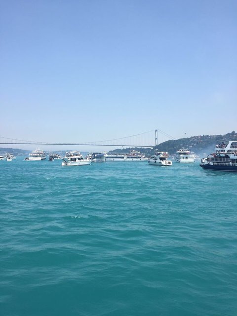 Siyah-beyazlı takıma yüzlerce tekne eşlik ederek, boğazı adeta siyah-beyaz renklere bürüdüler.