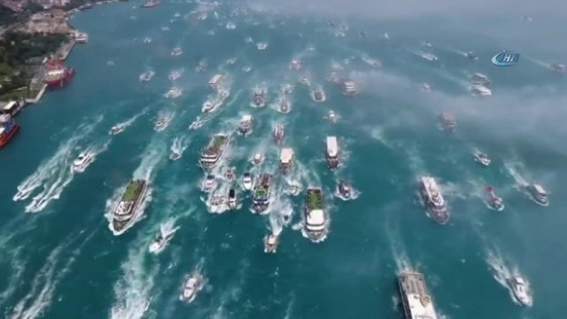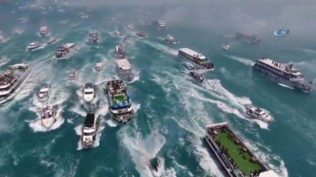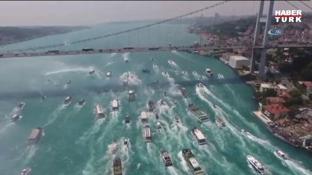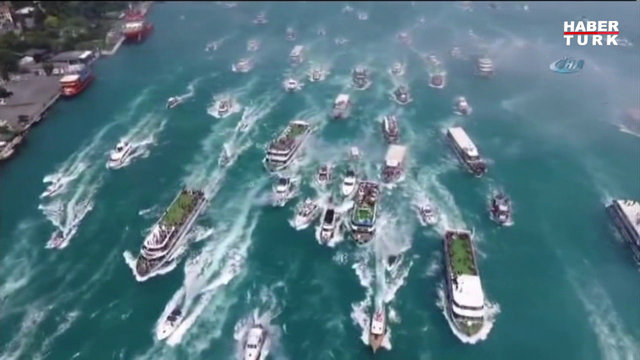 Buradan teknelere binen siyah-beyazlı oyunculara taraftarlar da başka teknelerle eşlik etti.