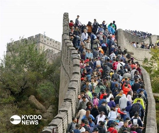 Çin Seddi’nin üstünde hıncahınç bir kalabalık