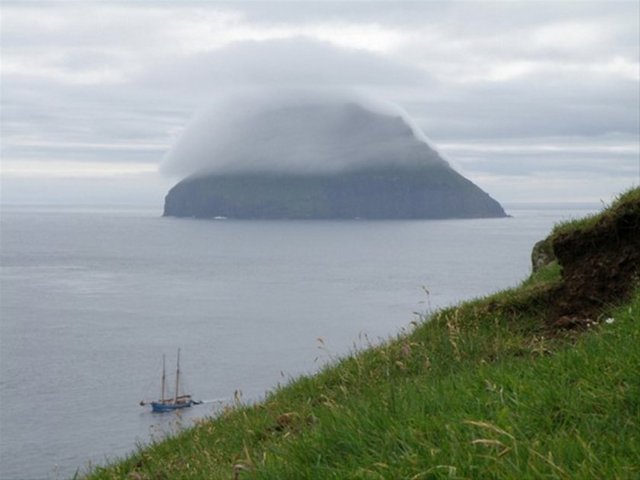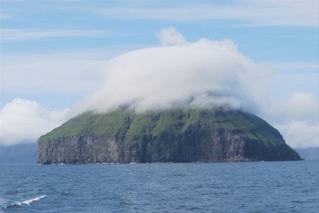 Denizin ortasındaki küçük adanın oldukça ilginç bir özelliği var. İzlanda ile Faroe Adaları’nın ortasında bulunan minik ada, tepesinde bulunan bulutla tanınıyor.
