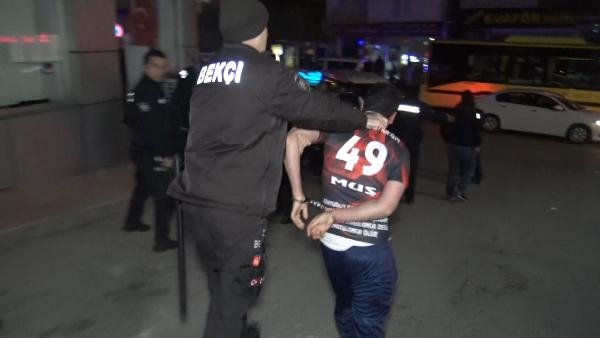 Bölgedeki 2 dükkanın camlarının kırıldığı olayın arından polis ekipleri, kavgaya karışan 16 kişiyi gözaltına aldı. Şüpheliler ekip otolarına güçlükle bindirildi. Olayda kullanıldığı belirlenen çok sayıda sopa, bıçak ve 2 satıra el konuldu.