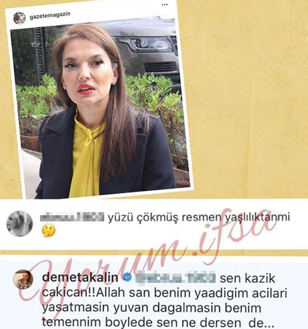 Milliyet Gazetesi’nin haberine göre Demet Akalın, sosyal medya üzerinden kendisine “Yüzü çökmüş resmen, yaşlılıktan mı?” diyen takipçisine cevap verdi.