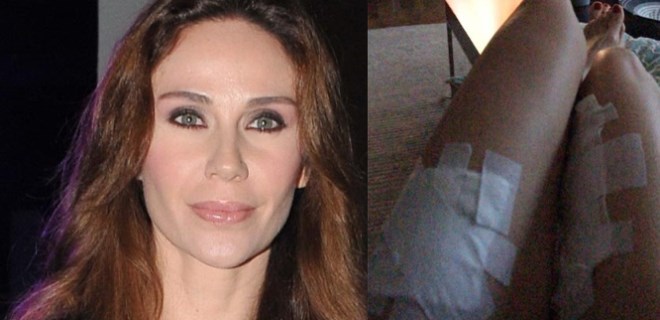 Takipçilerinin geçmiş olsun dileklerine teşekkür eden eski manken, bandajlı bacaklarının fotoğrafına, “Yanık bacaklarım