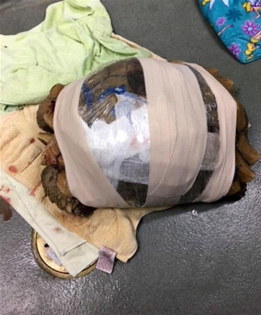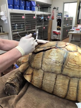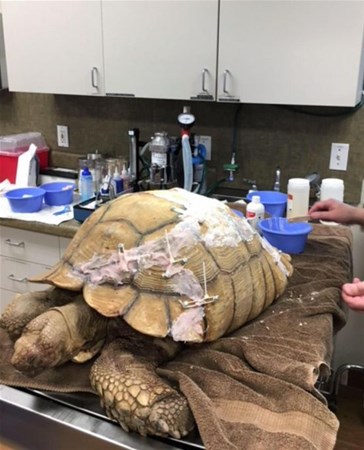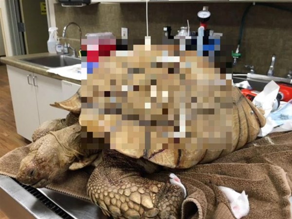 Amerika’da Humpty isimli 40 yaşındaki bu kaplumbağa kırılan kabuğu tedavi edildikten sonra sağlığına kavuşturuldu.
