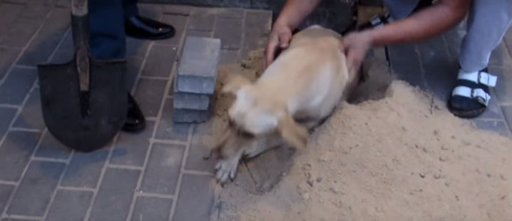 Vustam, yolu yapan inşaat işçilerinin köpeği bilinçli olarak orada bıraktıktan sonra kaldırımı tekrar inşa ettiklerini düşündüğünü söyledi. İki gün boyunca kaldırımın altında aç ve susuz şekilde ölüme terkedilmiş köpeğin hamile olduğu da öğrenildi.