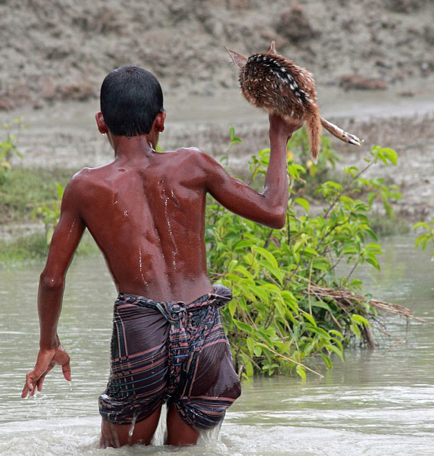 Bangladeş, Noakhali’de nehir sularına bir geyik yavrusunun düştüğünü gören Bilal isimli çocuk, hiç tereddüt etmeden sulara atladı.