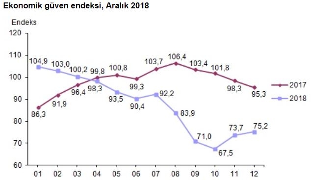 Ekonomik güven endeksinin 100’den büyük olması, genel ekonomik duruma ilişkin iyimserliği, 100’den küçük olması ise genel ekonomik duruma ilişkin kötümserliği gösteriyor.