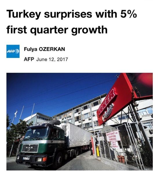AFP, büyüme rakamlarını “Türkiye ekonomisin sürpriz büyüme” başlığıyla okuyucularına servis etti.