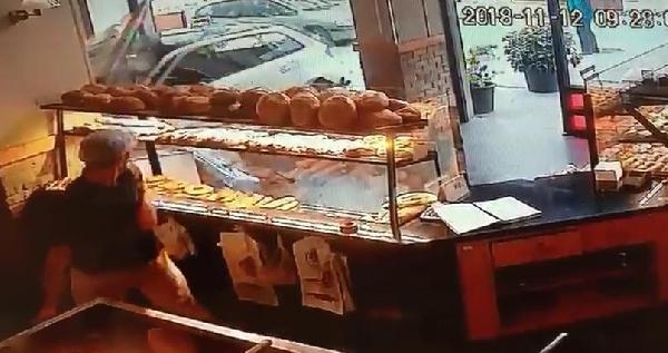 Öte yandan kaza anı iş yerinin güvenlik kameraları tarafından saniye saniye yansıdı. Güvenlik kameralarına yansıyan görüntülerde, kadın sürücünün kullandığı beyaz renkli otomobil, park etmek için direksiyonu sağa kırıyor. Bir süre sonra da otomobil fırına dalıyor.