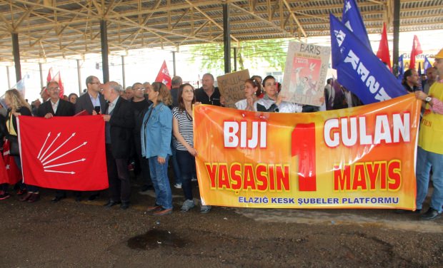 Kamu Emekçileri Sendikaları Konfederasyonu (KESK) Elazığ Şubesi tarafından 1 Mayıs İşçi Bayramı kapsamında etkinlik düzenlendi. Perşembe Pazar alanında düzenlenen 1 Mayıs etkinliğine HDP Diyarbakır Milletvekili Ziya Pir ve KESK’e bağlı sendikaların yanı sıra CHP’liler de katıldı. Konuşmaların ardından kürsüye HDP’li Milletvekili Ziya Pir çıktı. Pir’in konuştuğu sırada CHP’liler ‘Hak hukuk adalet’ sloganı attı. Pir sloganın üzerine “Elazığ’daki CHP tabanı hala hak, hukuk, adalet diyor. Buna samimiyetiyle inanıyor, sizi kutluyorum” dedi.