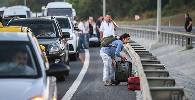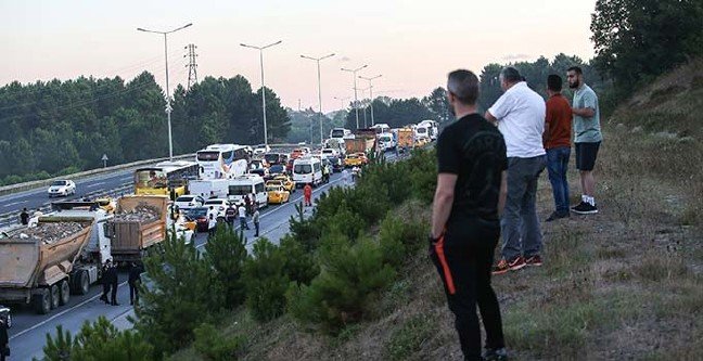 İstanbul Havalimanı yönünde tamamen duran trafik, hafriyat kamyonunun vinç yardımıyla kaldırılmasıyla normal akışına döndü.