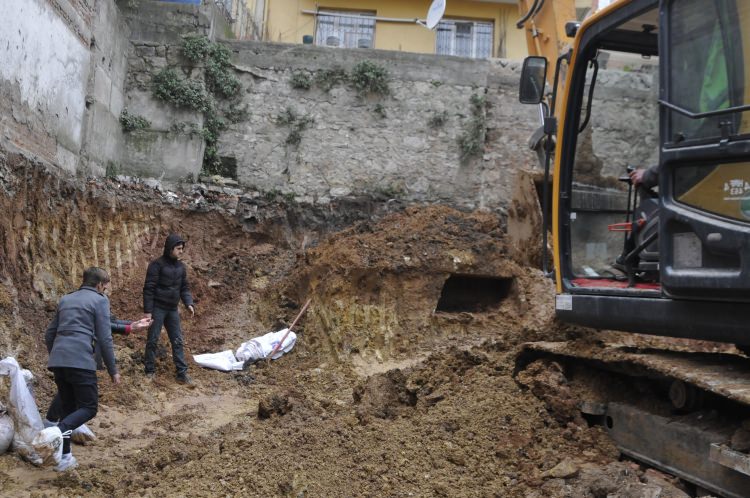 Eski İstanbul Yolu Caddesi’nde müteahhit Naci Kaya’nın yaptırdığı inşaatın temel kazısı sırasında iş makinesi sert bir cisme rastladı. İş makinesini kullanan Bahattin Ördem, polisi arayarak durumu bildirdi.