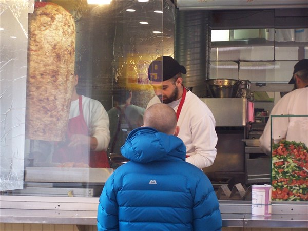 Tarık 45 yaşında ve 2. nesil Türkiye göçmeni. Samsun’dan 7 yaşında Berlin’e gelmiş. 20 yaşında amcasının yanında döner işine girmiş ve 10 senelik bir tecrübeden sonra kendine burayı açmış ve sebzeli tavuk döner satmaya başlamış. Ama bu Türkiye’de bildiğimiz usul bir sebzeli döner değil . Sebzeler etin içinde pişmiyor dışarıdaki fritözlerde kızartılıp dönerle birlikte ekmeğin içine konuyor.
