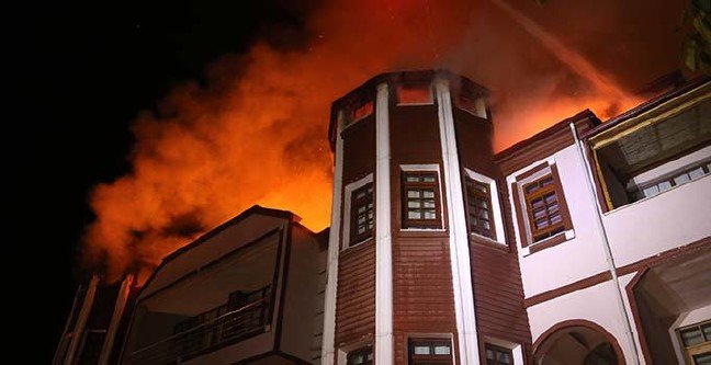 Yangını fark eden Yaylacıoğlu ailesi, konağı boşaltırken durumu itfaiyeye bildirdi.