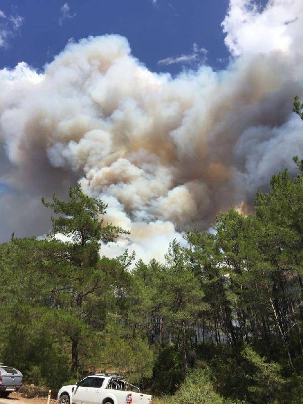 Marmaris’in İçmeler Mahallesi Asparan Mevkisi’ndeki, kızılçam ağaçlarıyla kaplı ormanlık alandan, bugün saat 14.30 sıralarında dumanlar yükselmeye başladı. Piknikçilerin yaktığı mangal ateşinden çıktığı belirlenen yangın, rüzgarın da etkisiyle kısa sürede büyüdü. Sarp arazi nedeniyle karadan müdahalenin güç olduğu bölgeye 15 arazöz ve 2 söndürme helikopteri sevk edildi. Alevler, rüzgarın da etkisiyle 1 kilometre mesafedeki yerleşim yerine doğru ilerlerken, alevlere havadan ve karadan müdahale sürüyor.