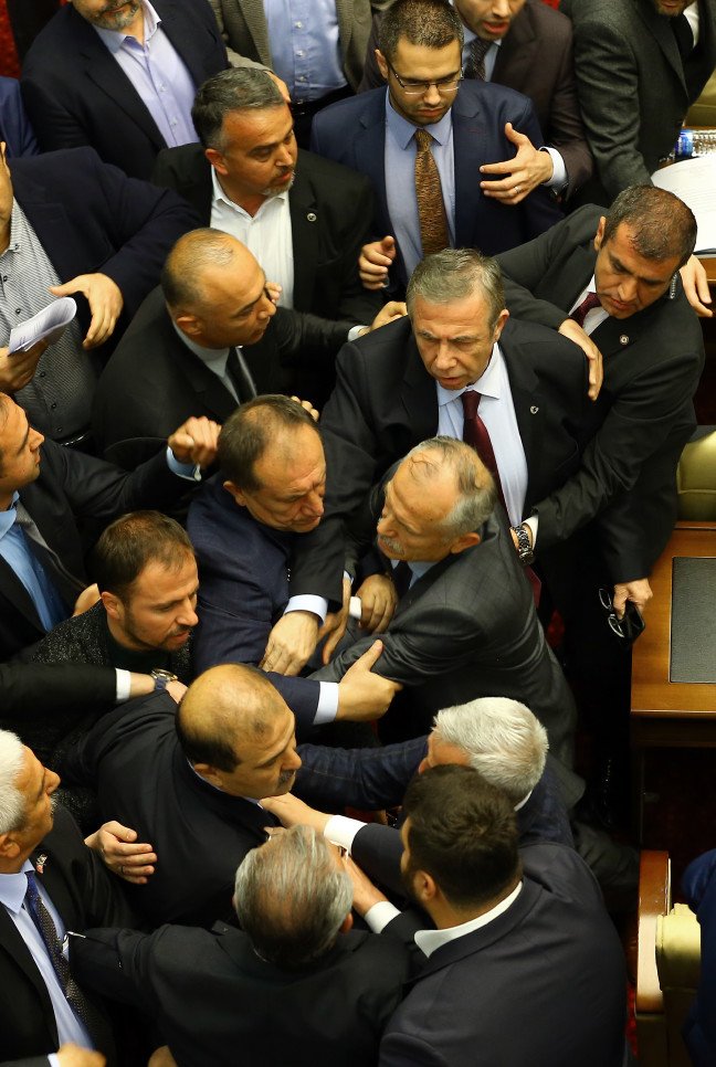AK Parti ve MHP’li meclis üyelerinden itirazların yükselmesi üzerine Yavaş, toplantıya ara verdi. Yavaş, salondan ayrılırken bazı belediye meclis üyeleri arasında tartışma ve arbede yaşandı.