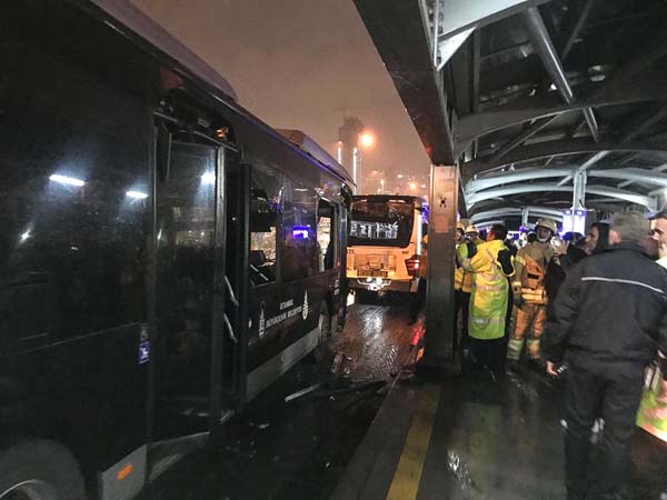 Haramidere Metrobüs durağında kaza meydana geldi. Olay yerine çok sayıda itfaiye, sağlık ve polis ekibi sevk edildi. Alınan bilgiye göre, Beylikdüzü’nden Topkapı yönüne giden metrobüs, yağış nedeniyle kayganlaşan yolda duramayarak, Haramidere Durağı’nda bekleyen metrobüse çarptı.