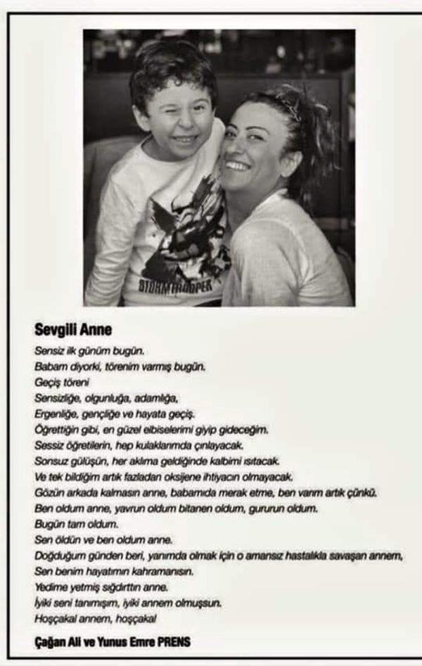 Yunus Emre Perens “Küçük bir oğlumuz var, olgun bir çocuk oldu, her şeyin iyi olmasını istiyoruz, eşim dünyaya veda etti. Gazetede yayınlanan şiiri birkaç ay önce yoğun bakımda tedavi gördüğü sırada yazmıştım. 7 yıldır kanser hastasıydı. Çok fazla tedavi imkanı denedi. Çok güçlü bir kadındı, inanılmaz bir insandı ömrü yetmedi. Bize çok kıymetli bir emanet bıraktı, oğlumuzu. Çok severek evlenmiştik, 13 yıldır evliydik. Çok sevdik birbirimizi. Küçük bir oğlumuz var, annesine çok destek oluyordu. Annesi de onun için yaşıyordu. Çok iyi dosttuk her şeyden önce, oğlu için çok çabaladı” dedi.