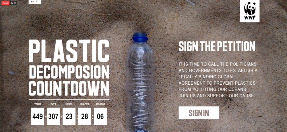 Uzmanlara göre, bir plastik şişenin doğada çözünme süresi yaklaşık 400 ila 450 yıl sürüyor. Dünya Doğayı Koruma Vakfı, Portekiz’in Lizbon şehri merkezli NOSSA isimli şirket ile 30 Mart’ta başlattığı ve bir pet şişenin gösterildiği canlı yayının 450 yıl süreceğini duyurdu.