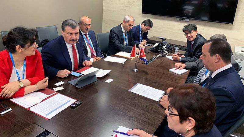 Bakanlıktan yapılan yazılı açıklamada, Bakan Fahrettin Koca’nın İsviçre’nin Cenevre şehrinde düzenlenen 2’nci Dünya Sağlık Asamblesi’ne katıldığı, burada Küba, Portekiz, Irak, Azerbaycan, İran, Kırgızistan, Endonezya ve Çekya Sağlık Bakanları ile ikili görüşmeler gerçekleştirdiği belirtildi. Bu çerçevede, Endonezya Sağlık Bakanı Nila Moeloe ile iki ülke arasında ‘Sağlık Alanında İş Birliği Anlaşması’, Kırgızistan Sağlık Bakanı Kosmosbek Çolpanbayev ile ‘2014 tarihli İş Birliği Anlaşması Ek Protokolü’nün imzalandığı kaydedildi. Bu anlaşmalar çerçevesinde sağlık hizmetleri, bulaşıcı ve bulaşıcı olmayan hastalıkların önlenmesi ve kontrolü, ilaç, aşı ve tıbbi cihazlar, insan kaynağı kapasite gelişimi konularında teknoloji paylaşımı, uzman ziyaretleri, eğitim-seminer ve çalıştayları ile sağlık sektöründeki yatırımların karşılıklı teşvik edilmesi çalışmalarının yürütüleceği bildirildi.