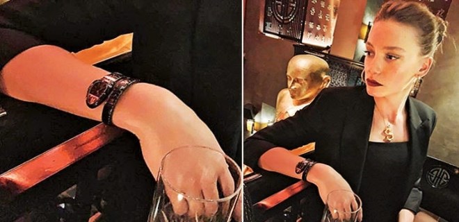 Akşam Gazetesi’nin haberine göre Sarıkaya, kısa süreli gittiği seyahatinde adeta servet taşıyor! Oyuncu kullandığı Bvlgari Serpenti marka saatiyle olay oldu.