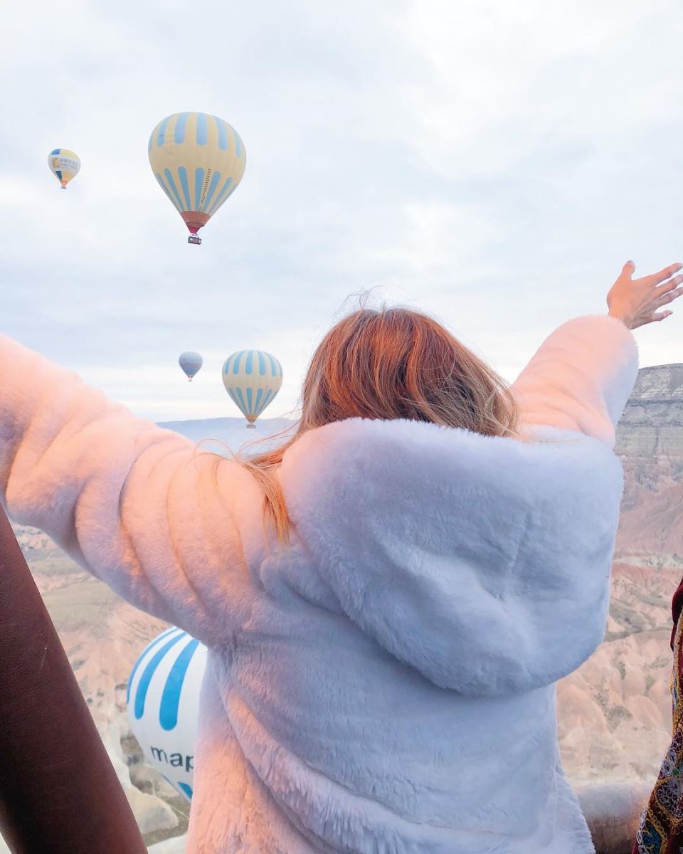 Burada gün doğarken balona binip, fotoğraf çektirdi. Birbirinden rekli kareleri de Instagram hesabına yükledi.