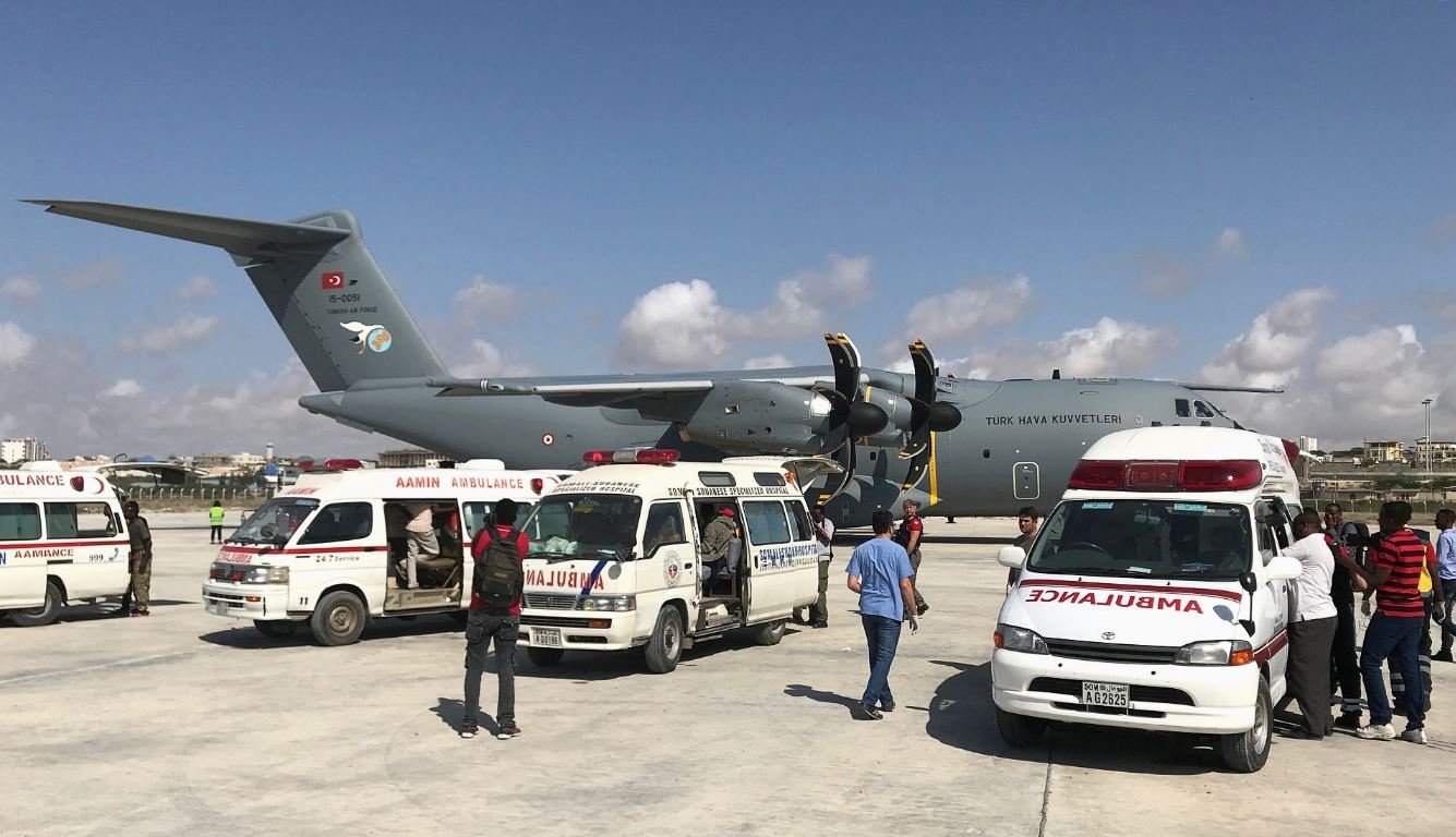 Hafta sonu yaşanan saldırı sonrasında Cumhurbaşkanı Erdoğan’ın talimatıyla Türkiye’den gönderilen ambulans uçak ve tedavi malzemeleri bu sabah Somali’ye ulaştı. Reuters haber ajansının paylaştığı fotoğraflarda Hava Kuvvetleri’ne bağlı bir uçağın Mogadişu’ya indiği belirtilirken yetkililer ölü sayısında yeni bir açıklama yaptı.