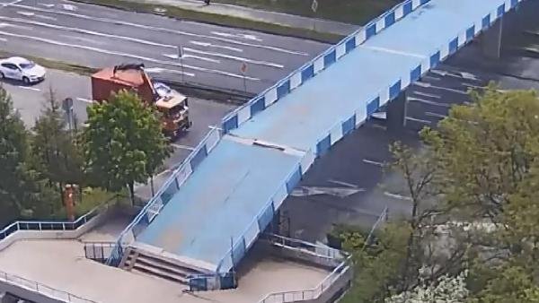 Olay, Polonya’nın Lubin kentinde meydana geldi. Trafik kamerasınca kaydedilen görüntülerde, yaya üst geçidin altından geçmekte olan mobil vincin üst geçide çarpması sonucu, vincin ön tekerleklerinin yerden yükseldiği ve kabin kısmının köprüye çarparak ezildiği görüntülendi.