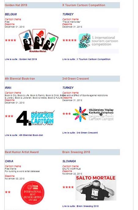 Kısa adı FECO olan ve merkezi İsviçre’de olan Karikatür Dernekleri Federasyonu (Federation of Cartoonists Association) her yıl dünya genelinde düzenlenen karikatür yarışmalarına belirli ölçütlere göre bir ila altı arasında yıldız vererek, yarışmalarını sınıflandırıyor. Uluslararası Turizm Karikatürleri Yarışması 2011 yılından bu yana beş yıldız ile kalitesi ve güvenirliği tescil edilerek dünya genelinde pek çok karikatür yarışmasına göre öne çıkıyor.