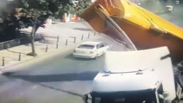 Üsküdar'da kamyonun devrilme anı kamerada