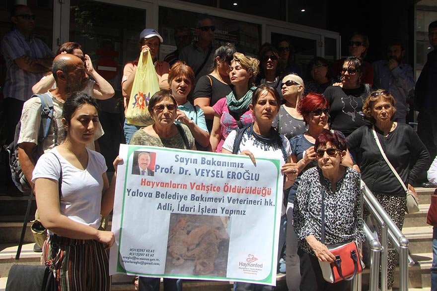 Yalova Belediyesi Hayvan Barınağı’nda köpeklerin zehirlenerek öldürüldüğünü iddia eden bir grup hayvansever, belediye hizmet binası önünde basın açıklaması gerçekleştirildi.