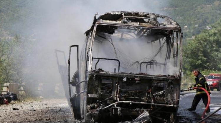Olay, saat 14.00 sıralarında meydana geldi. Trabzon’dan yola çıkıp, Ardahan’a giden Gültekin İnce yönetimindeki 08 AE 525 plakalı özel bir firmaya ait yolcu otobüsünün arka lastiği, Artvin merkeze bağlı Salkımlı Köyü mevkiinde alev aldı. Lastikten başlayan yangın, kısa sürede büyüdü ve tüm araca yayıldı.