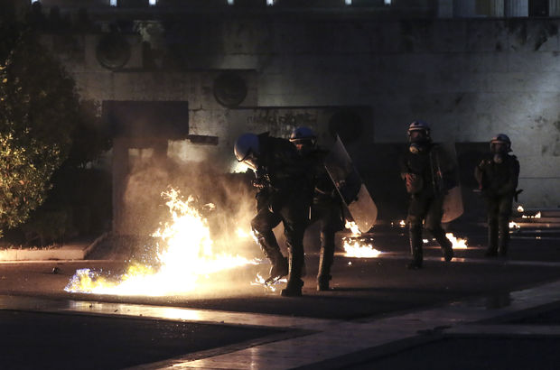 Yunanistan Kamu Çalışanları Federasyonu (ADEDY) ve İşçi Sendikaları Genel Konfederasyonunun (GSEE) çağrısıyla Sintagma Meydanı’nda gerçekleştirilen protesto eylemi sırasında yüzleri maskeli bir grup polislere molotofkokteylli saldırıda bulunarak meclise girmeye çalıştı. Polisle çatışan göstericiler meclis binası önünde bulunan meçhul asker anıtının yanındaki nöbetçi kulübesini ateşe verirken, polis göz yaşartıcı gaz kullanarak müdahale etti.